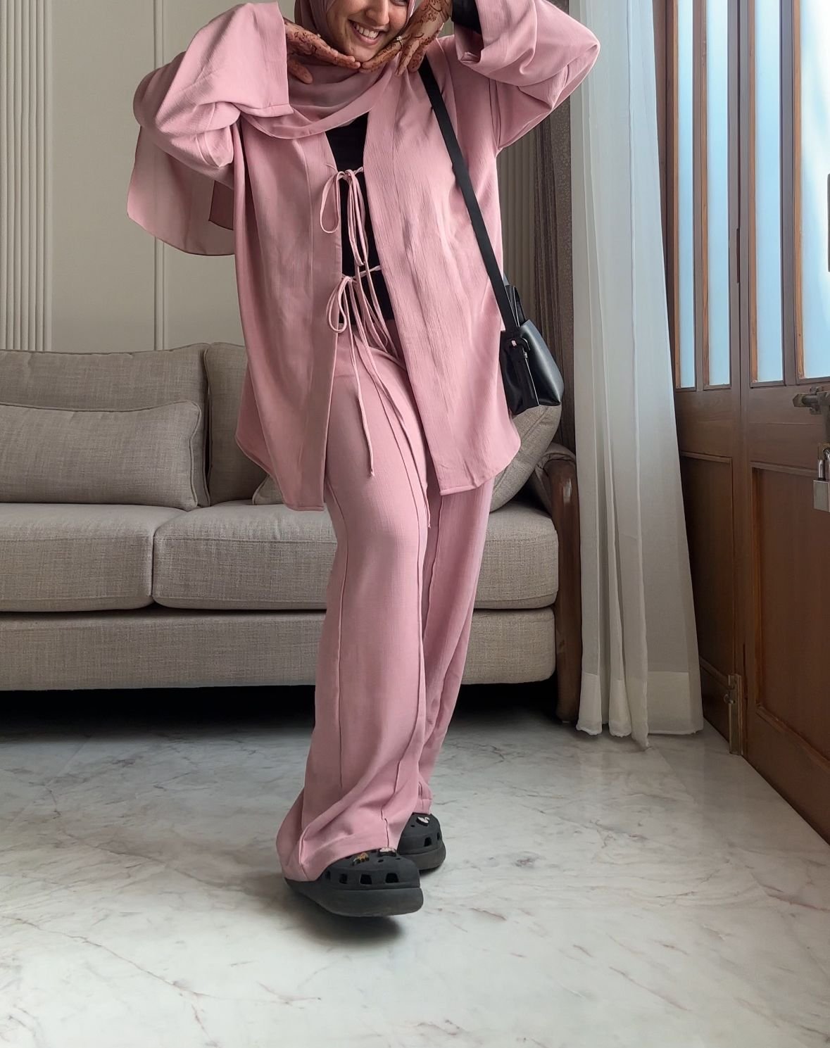 Style Tip: Pair with a black hijab, sandals and a statement watch for a minimal yet polished look.