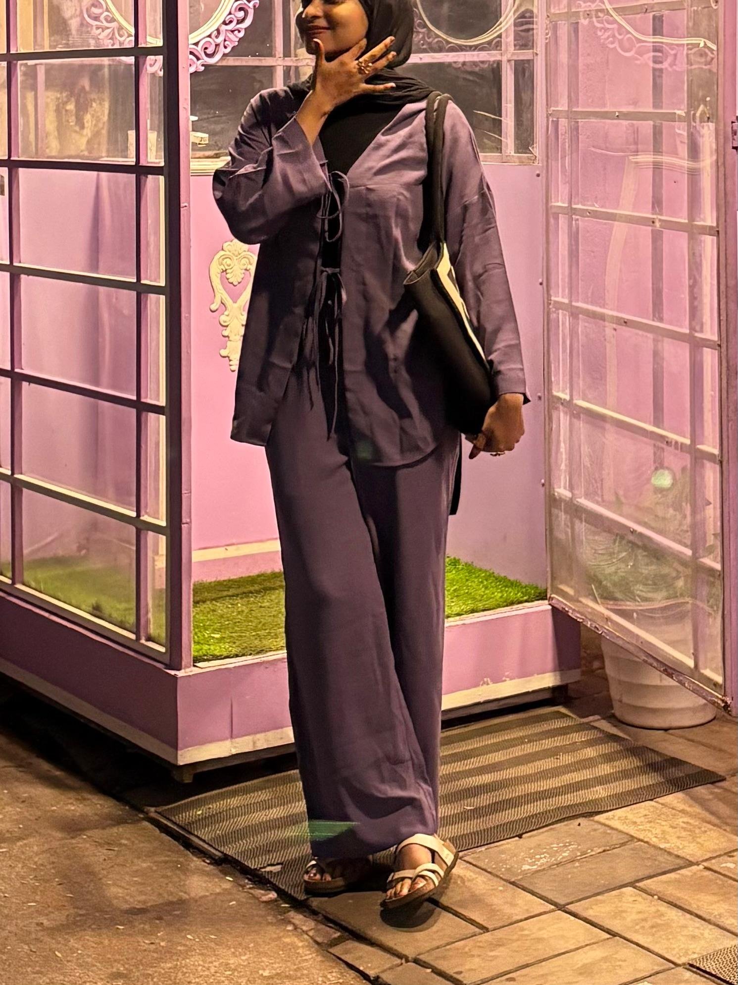 Effortless elegance meets casual comfort with our Drawstring Jacket Co-ord Set. Designed in a gorgeous dusty purple tone, this two-piece ensemble includes a drawstring jacket-style top and matching relaxed-fit pants – making it your go-to for modest, laid-back days or stylish evenings.