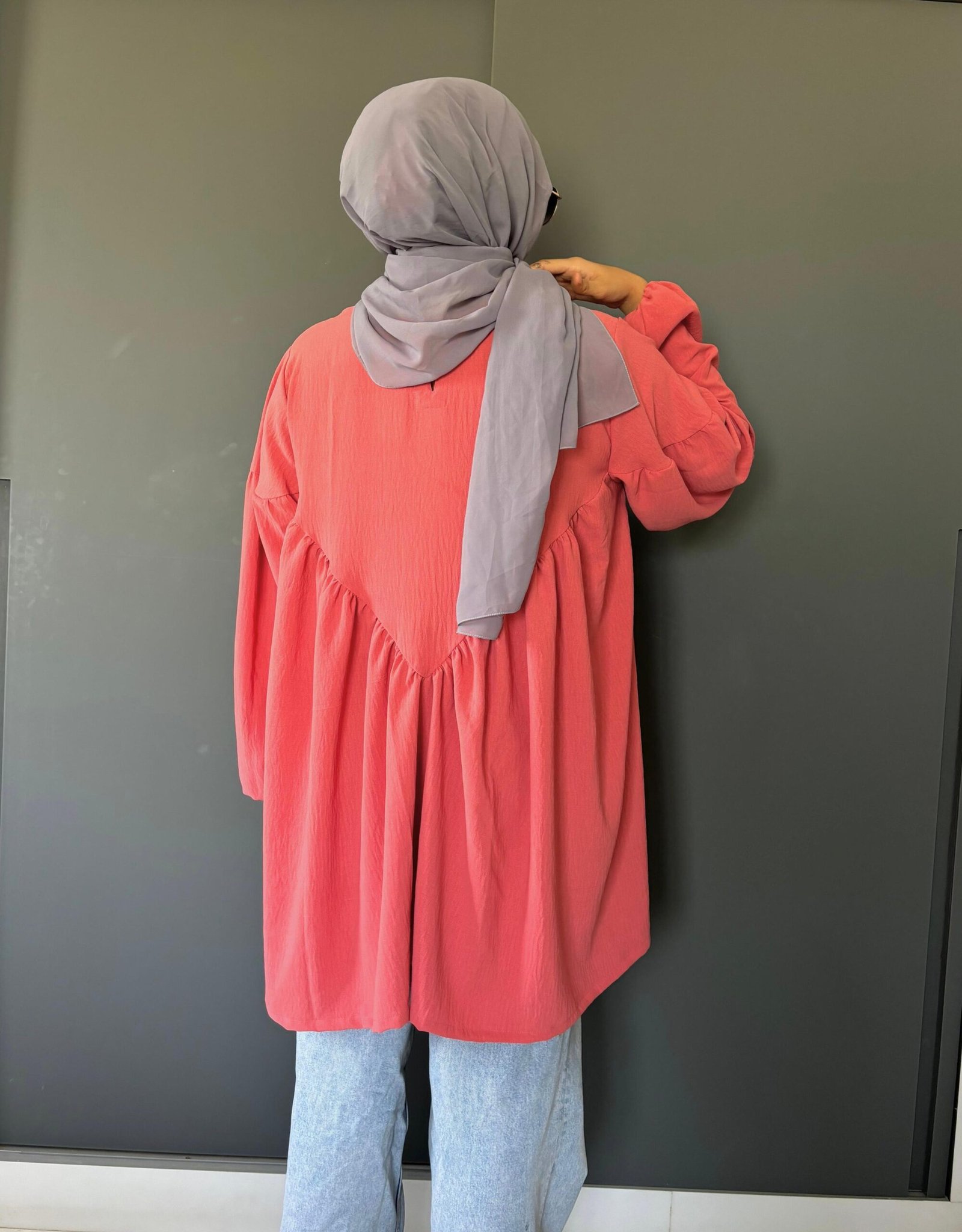 Style Tip: Pair it with wide-leg jeans or neutral-toned trousers for a modest yet trendy look.