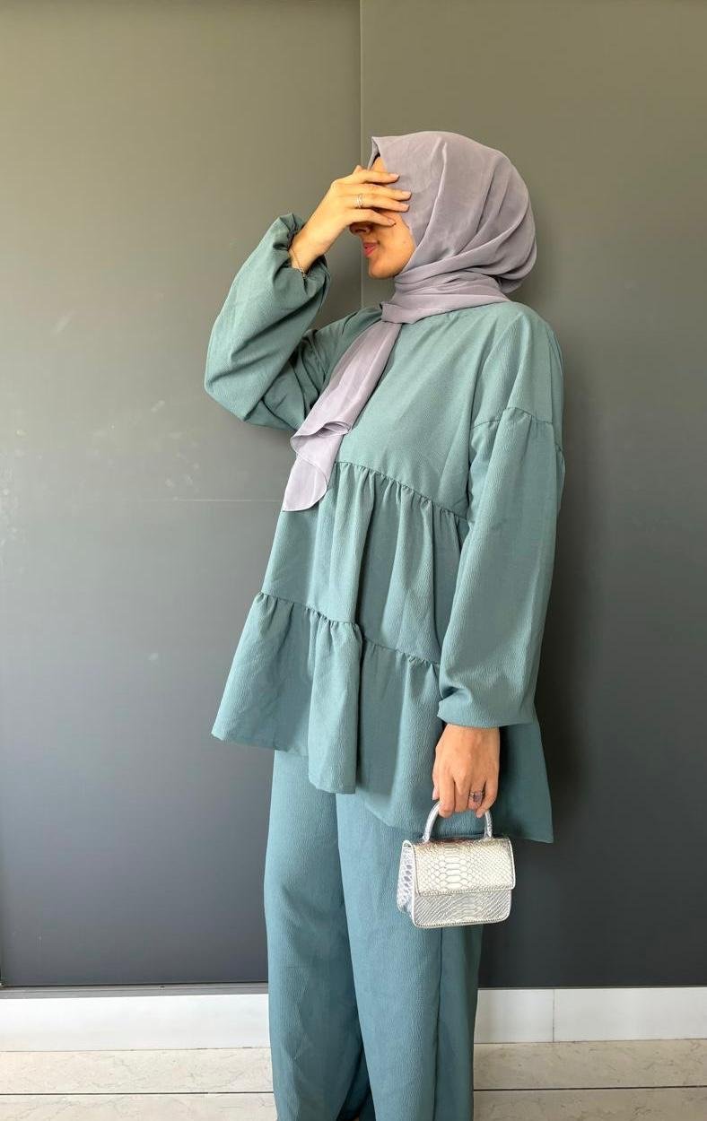 Minimalist yet statement-making, our Tiered turquoise Modern Co-ord Set is designed for the fashion-forward woman who values comfort without compromising style. The set features a tiered tunic top with flowy pants, giving you a graceful yet contemporary silhouette.